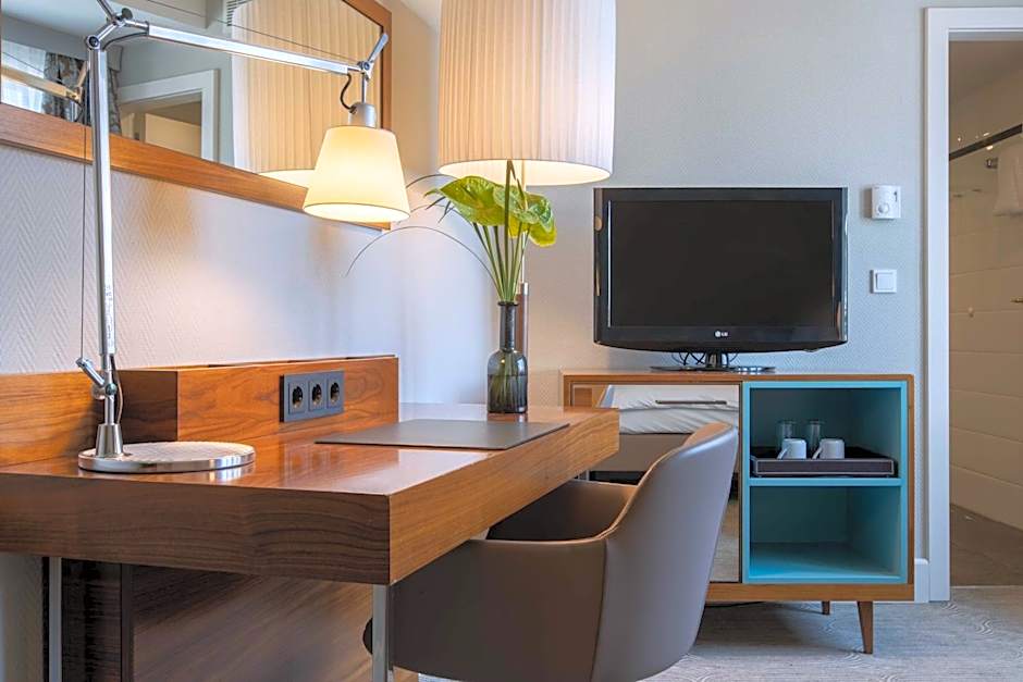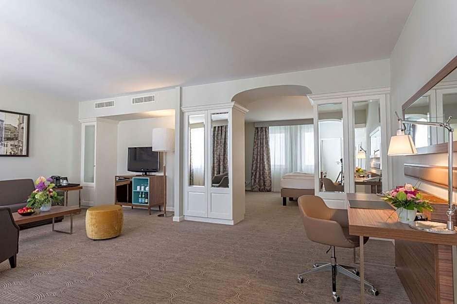Elegant suite offering a comfortable seating area, satellite TV, a mini-bar and air conditioning. The very spacious Junior Suite features a private bathroom fitted with a bathtub. Bathrobes, toiletries and a hairdryer are provided.